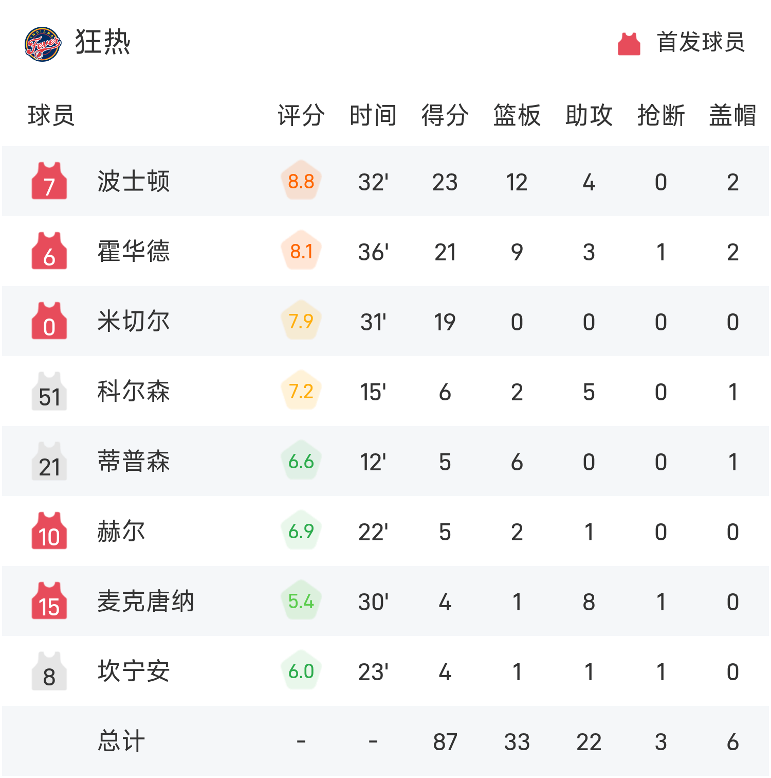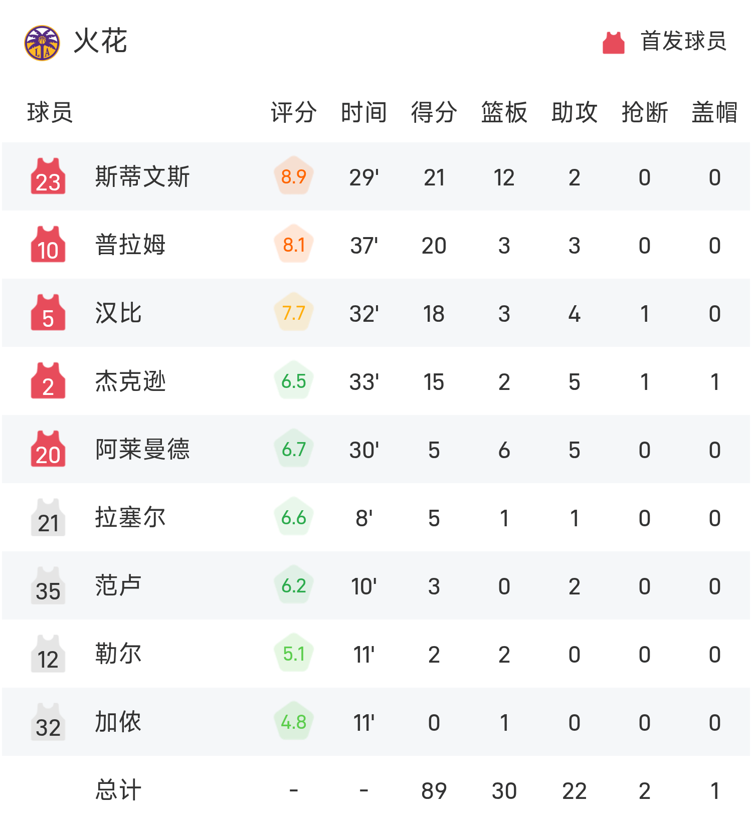 WNBA战报:斯蒂文斯21分12板,波士顿23分12板,火花89-87险胜狂热